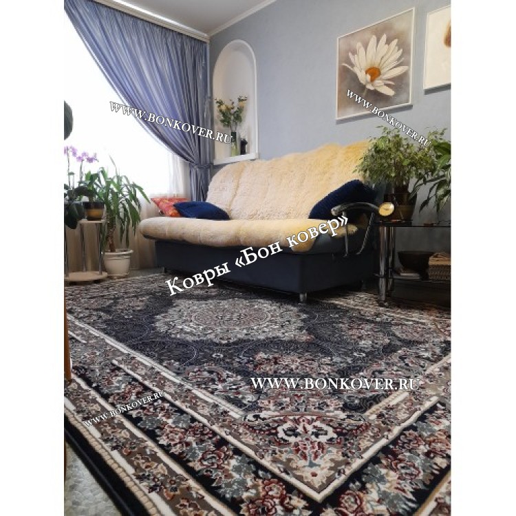 Турецкий Ковер Для Гостиной Дизайн 33 Синий с Серым Прямоугольный