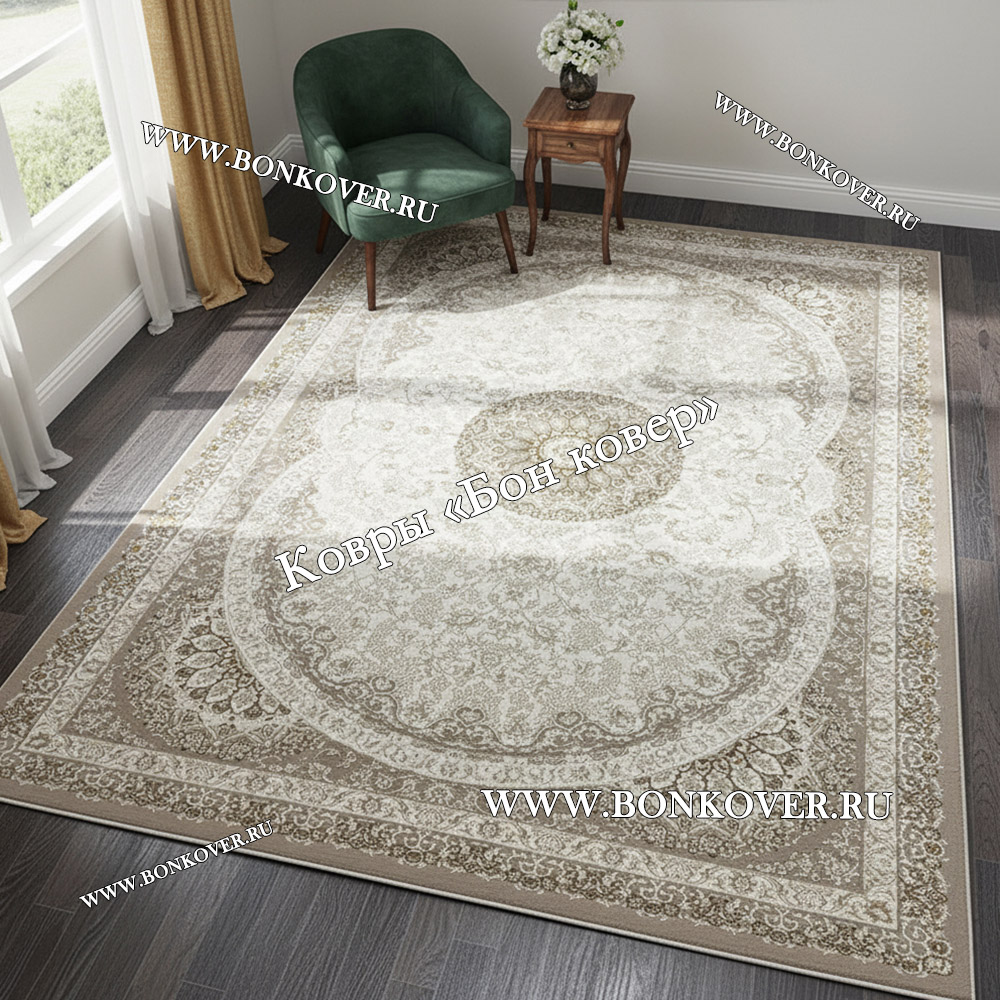 Турецкий Ковер Для Гостиной Арт 129 Бежево-Коричневый станет идеальным преображением вашей комнаты, подчеркивая высокий статус владельца.