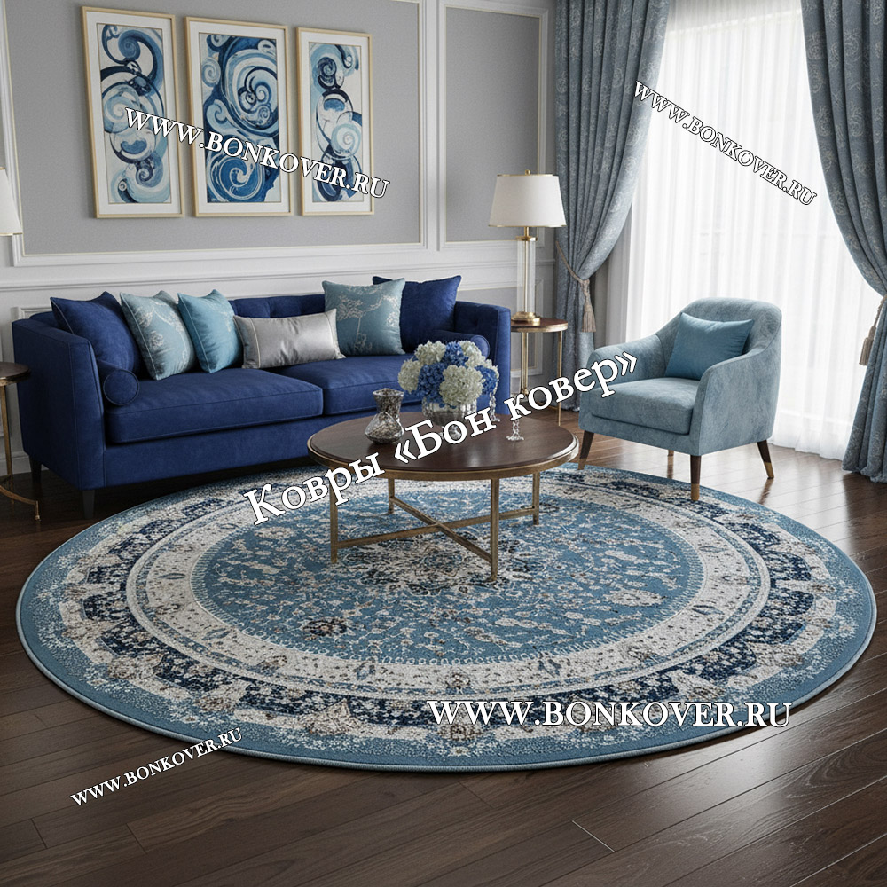 Турецкий Ковер Для гостиной New дизайн 381 Синий Круг станет идеальным преображением вашей комнаты, подчеркивая высокий статус владельца.